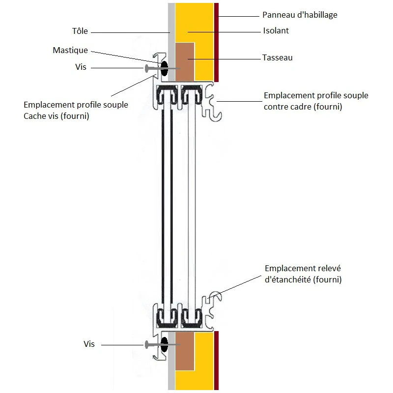 Conçu pour un montage discret par collage, cette fenêtre coulissante peut également être vissé coller lors de certain montage complexe sur surface moins propice à un encollage.