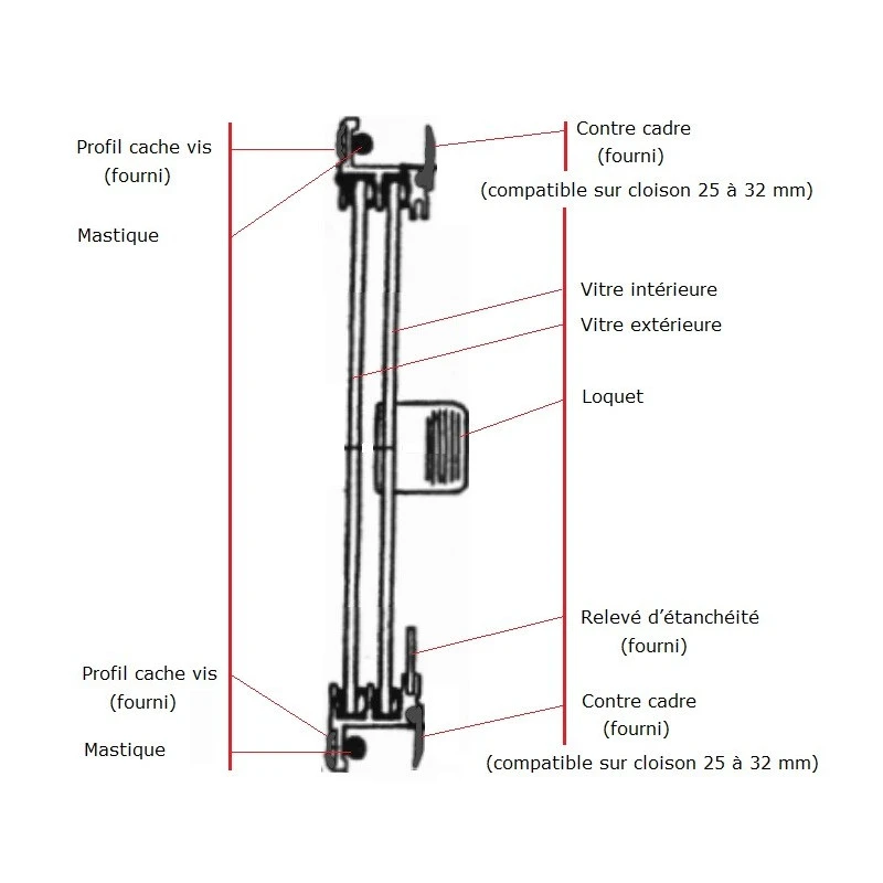 - Contre-cadre non-fournis : Pour cloison épaisseur 25 à 35 mm