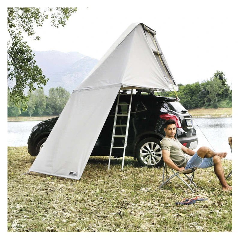 AUTOHOME vous propose un accessoire idéal pour votre tente de toit Columbus ! Cette solette s’adapte parfaitement à votre tente de toit et ajoutera une zone d’ombrage en quelques secondes à votre campement de bivouac !