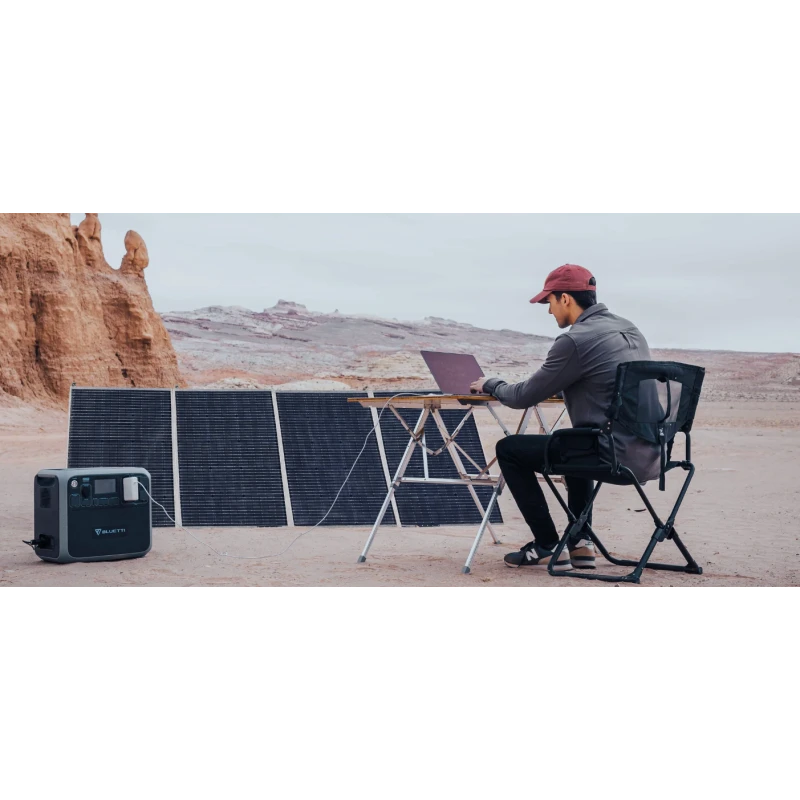 Le panneau solaire portatif BLUETTI 420 W est idéal pour la production d’énergie et la recharge facilement de votre batterie nomade. Ce panneau solaire est simple et rapide à installer. Connectez simplement le connecteur au générateur solaire, dépliez le panneau solaire et fixez le panneau sur son trépied. Le format valise facilite le transport et le stockage dans un bateau, un camping-car comme dans le van aménagé.