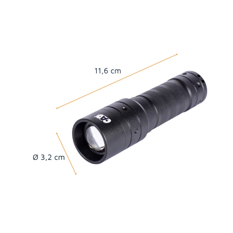 Cette lampe de poche présente la particularité d’avoir sa lentille ajustable permettant d’adapter le faisceau lumineux selon la distance à éclairer. Doté d’une belle puissance lumineuse de 350 lumens, elle permet d’éclairer jusqu’à 125 m de distance.