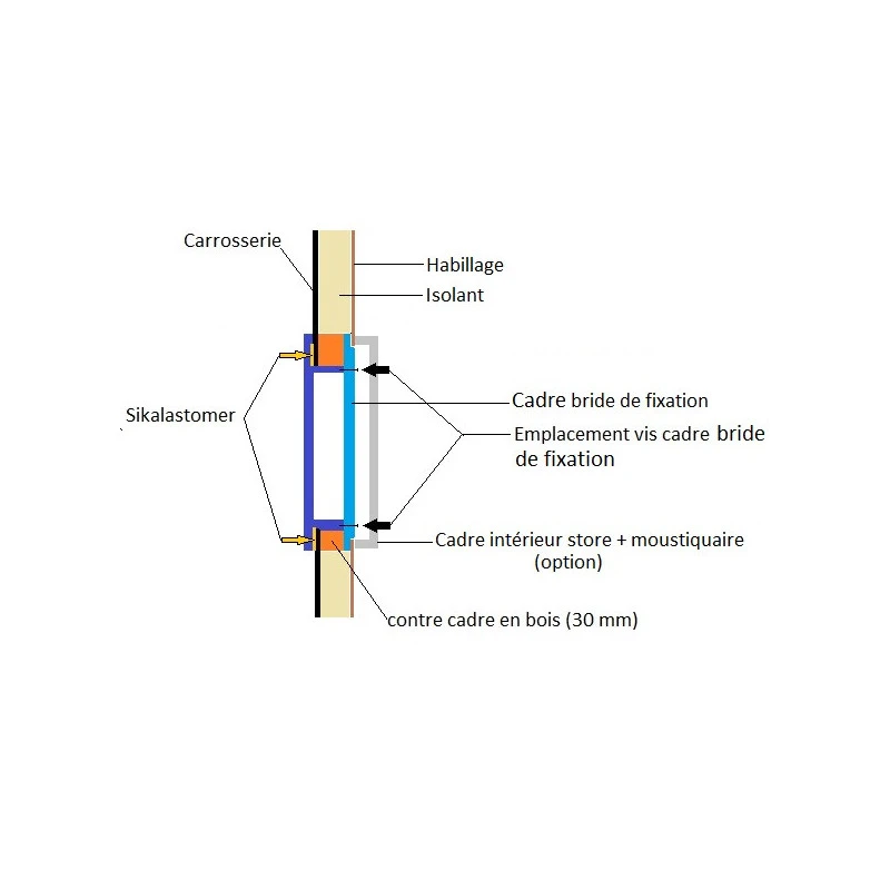 En standard, cet équipement pour camping-car ou fourgon aménagé est livré sans cadre intérieur. Néanmoins CARBEST propose un cadre de finition avec moustiquaire et store occultant plissé intégré. Pour l’installation, prévoir un mastic d’encollage et d’étanchéité type SIKA Sikalfex 521 par exemple.