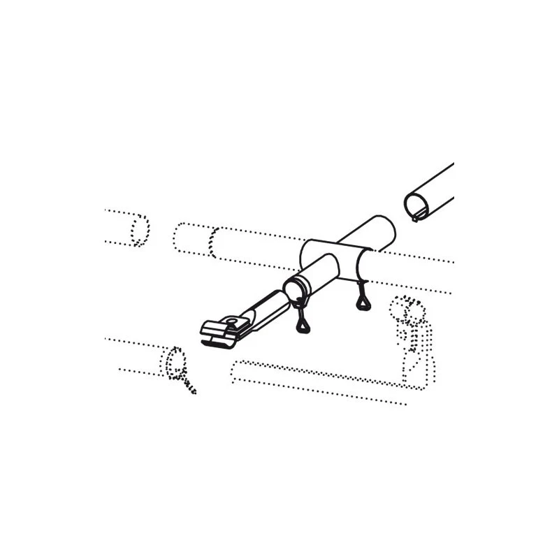 Le sas d’entrée fait environ 50 cm doté de cordelettes et d’attaches se fixe aisément via une bande à oeillets reliée à l’auvent et enfilée dans le profil à jonc de la caravane.