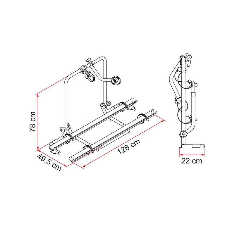 – Nombre de vélos : 2 en standard (jusqu’à 4 en option)