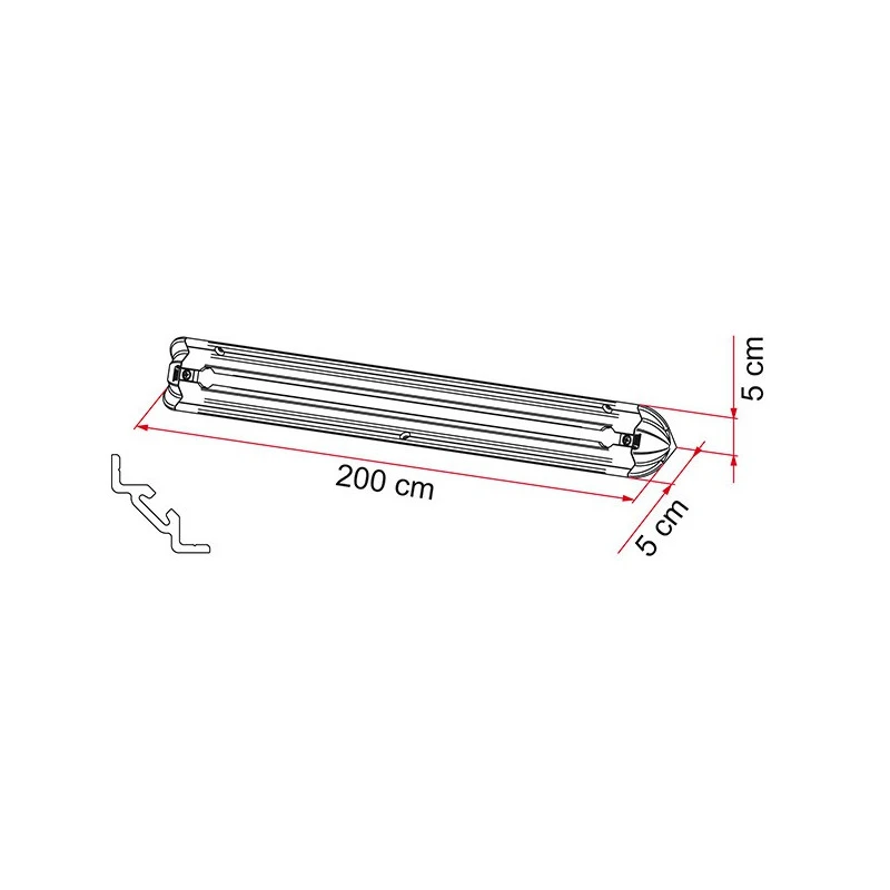 – Dimensions de la barre : L 200 x l 5 x H 5 cm