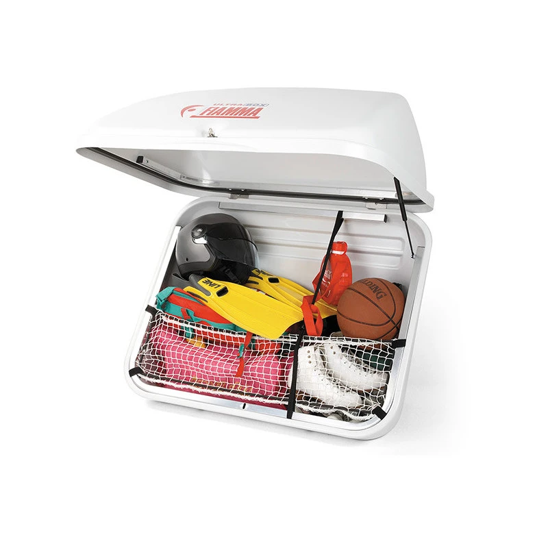 FIAMMA coffre arrière Ultra Box 500 assure un volume de rangement supplémentaire non négligeable lors de vos voyages en camping-car et fourgon aménagé, facile à installer équipé de vérin maintenant le coffre en position ouvert, filet de maintien pour facilité la charge du coffre.