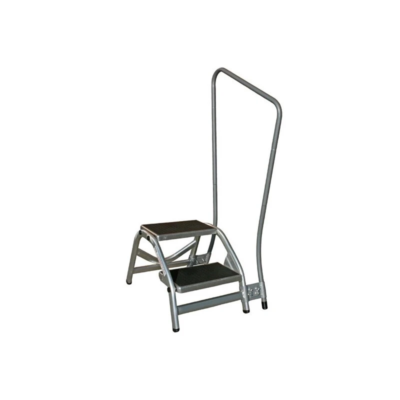 En métal, la main-courante est laquée époxy comme le marchepieds en gris.