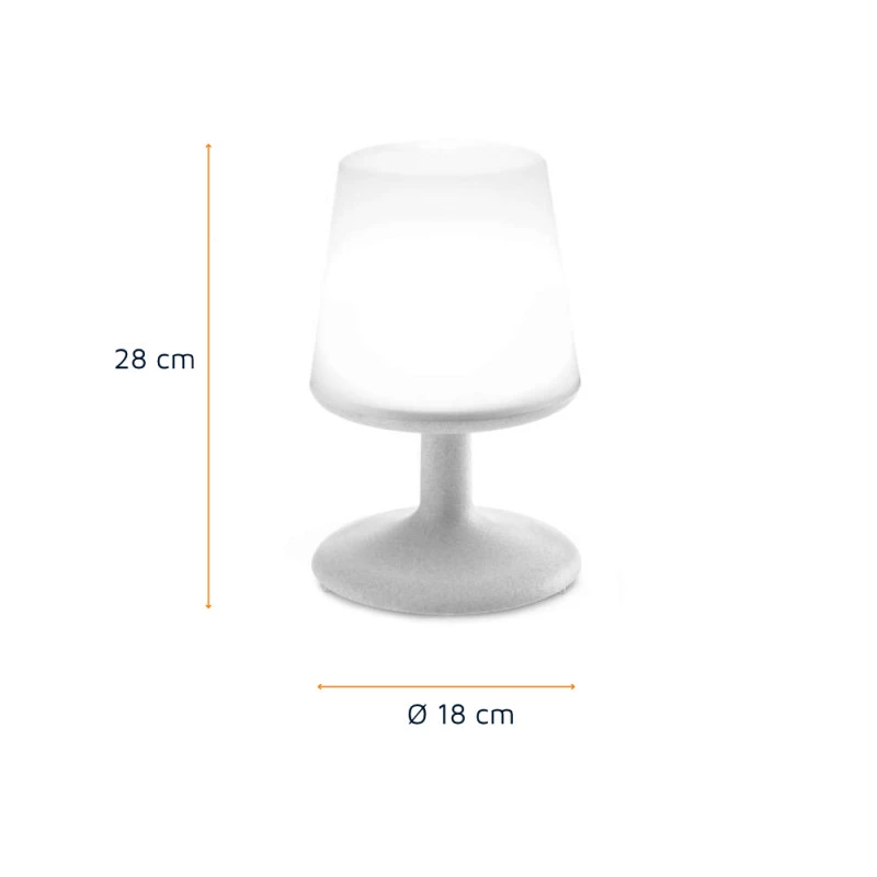 Cette lampe mobile est idéale en voyage ! Compacte et équipée d’une batterie, elle se recharge via un câble USB fourni et a jusqu’à 14h d’autonomie ! Grâce à ses 4 niveaux d’intensité, la lampe est idéale pour s’en servir de veilleuse pour les enfants la nuit, comme lampe de lecture ou lampe d’ambiance posée sur la table de camping !