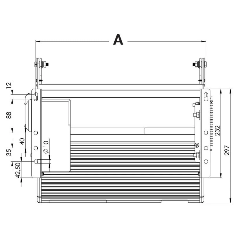 - Grand déport : 332 mm (longueur hors tout de 564 mm)