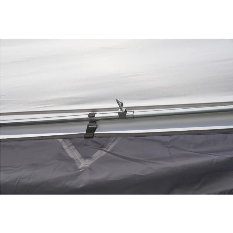Les deux parois sont donc amovibles très facilement, la façade est quant à elle dotée d’une grande ouverture pour que le auvent se transforme simplement en solette. Conçu pour les véhicules à gouttière de 180 à 220 cm de hauteur au sol, cet accessoire pour fourgon aménagé est donc parfait pour les « compacts » type Transporteur T5/T6 ou Trafic.