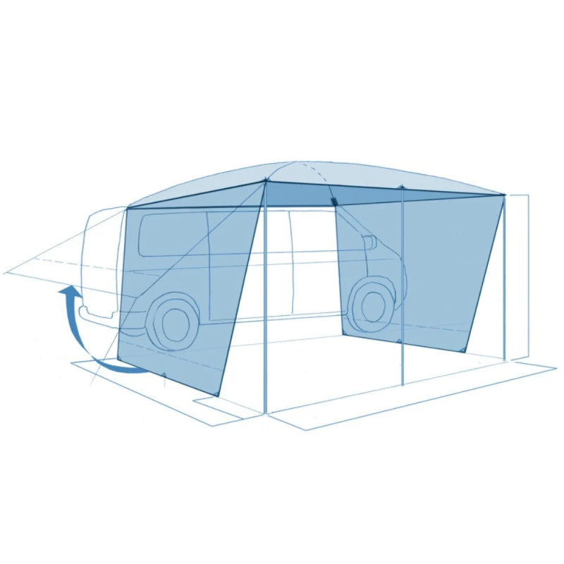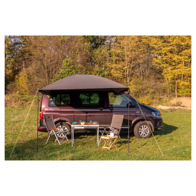 Auvent latéral de chez REIMO, le Mauritius Premium est présenté sous une longueur de 300 cm pour convenir aux fourgons aménagés versions longues.