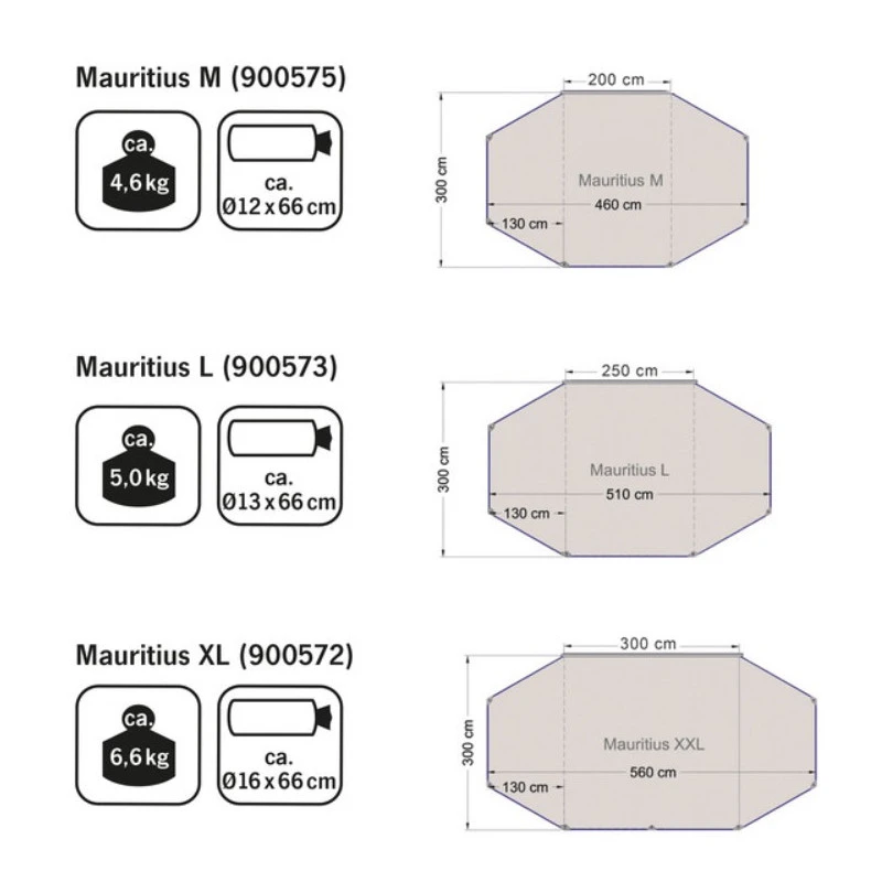 Spécifications de la toile d’ombrage pour fourgon et caravane REIMO Mauritius XL :