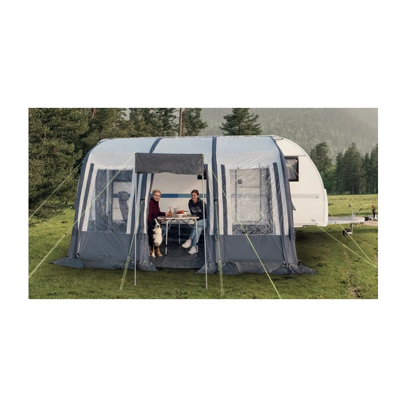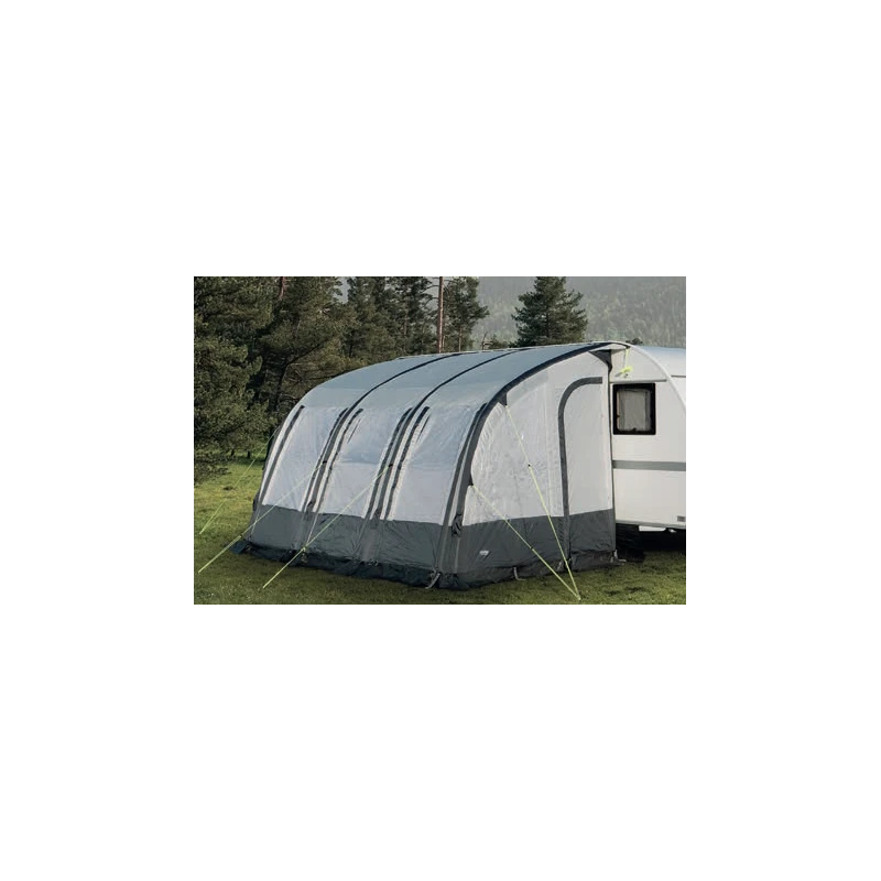 Le Rimini Air II de chez REIMO est un auvent composé d’une armature gonflable résistante ainsi que de tendeurs de toile en aluminium alliant légèreté et résistance.