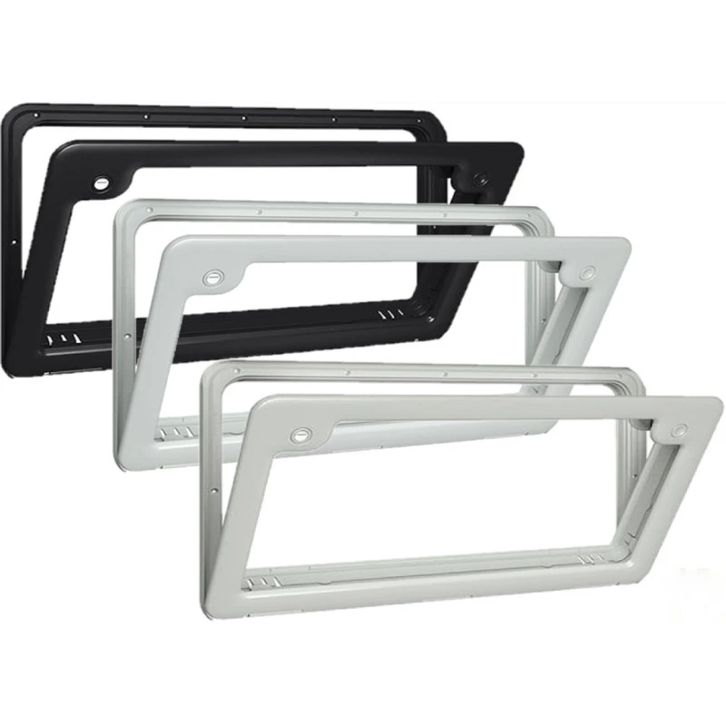 Accessoire camping-car très pratique, ce grand modèle de porte de coffre permet le stockage des bagages en soutes dans les camping-cars, fourgons aménagés et caravanes. Fourni complet avec cadre et contre carde plastique (gris clair ou blanc), le portillon THETFORD numéro 5 s’installe facilement : la chute de la découpe est utilisée pour compléter la partie articulée de la porte.